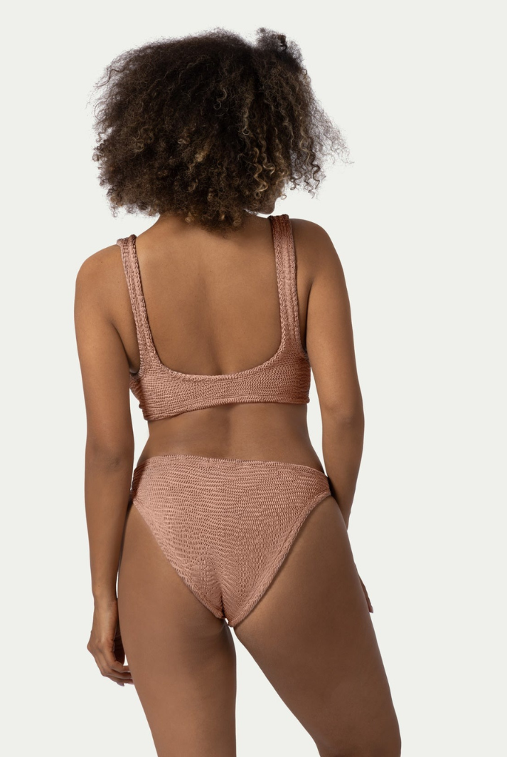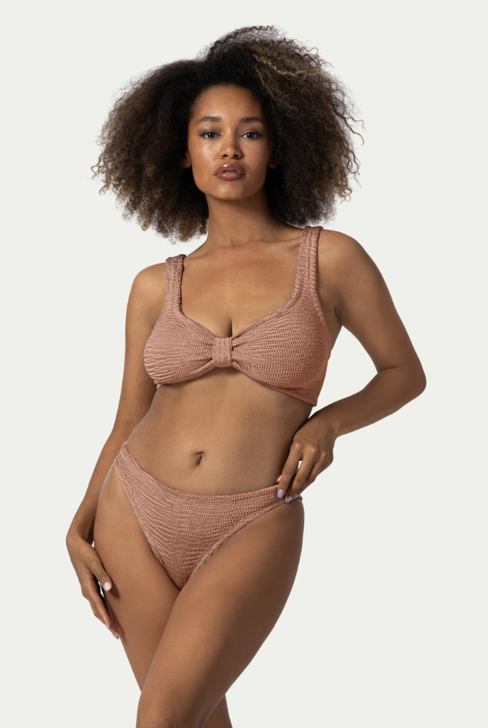 Effortlessly feminine and designed with inclusivity in mind, the SALMA swimsuit set is crafted from exceptionally stretchable, high-quality fabric that embraces and flatters a wide range of body types - from size XS to 2XL. The top is adorned with a soft, sculptural bow that accentuates the bust with grace, while offering a secure and adaptable fit, making it especially suitable for women with fuller or natural busts. The low-waisted bottoms provide comfortable, moderate coverage and a sleek silhouette. A beautifully versatile piece that embodies both style and support, SALMA is your perfect companion for sun-drenched days with effortless elegance.