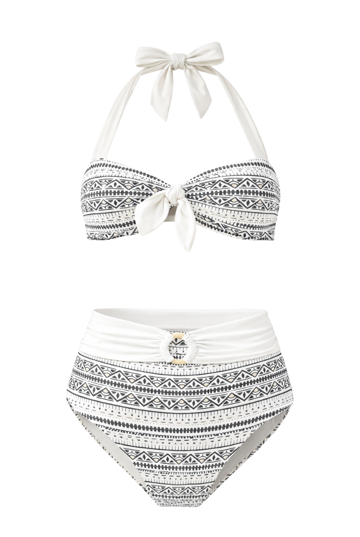 The Tribo high waisted bikini set blends refined tribal design with modern luxury swimwear structure. Featuring a bold black-and-white ethnic print inspired by the cultural heritage of São Tomé and Príncipe, this designer two-piece delivers elevated resort style with a sculpted, flattering fit. The halter bandeau top offers adjustable support, while the high-waisted bottom enhances shape and coverage. Crafted in premium stretch fabric and fully lined for comfort, this statement bikini transitions effortlessly from poolside to luxury beach escapes.