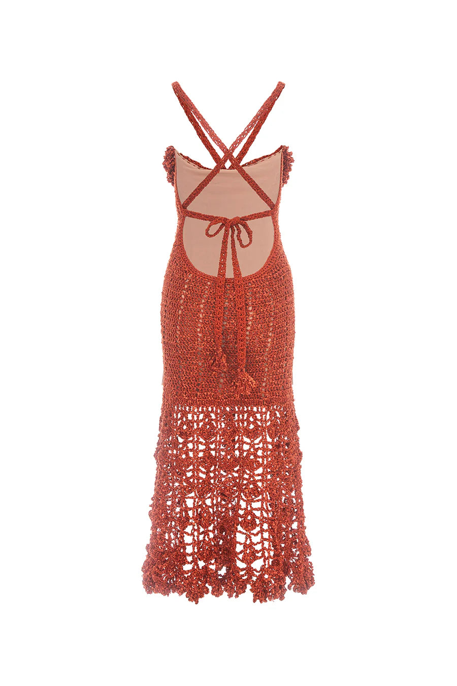 handmade terracotta crochet dress with open back