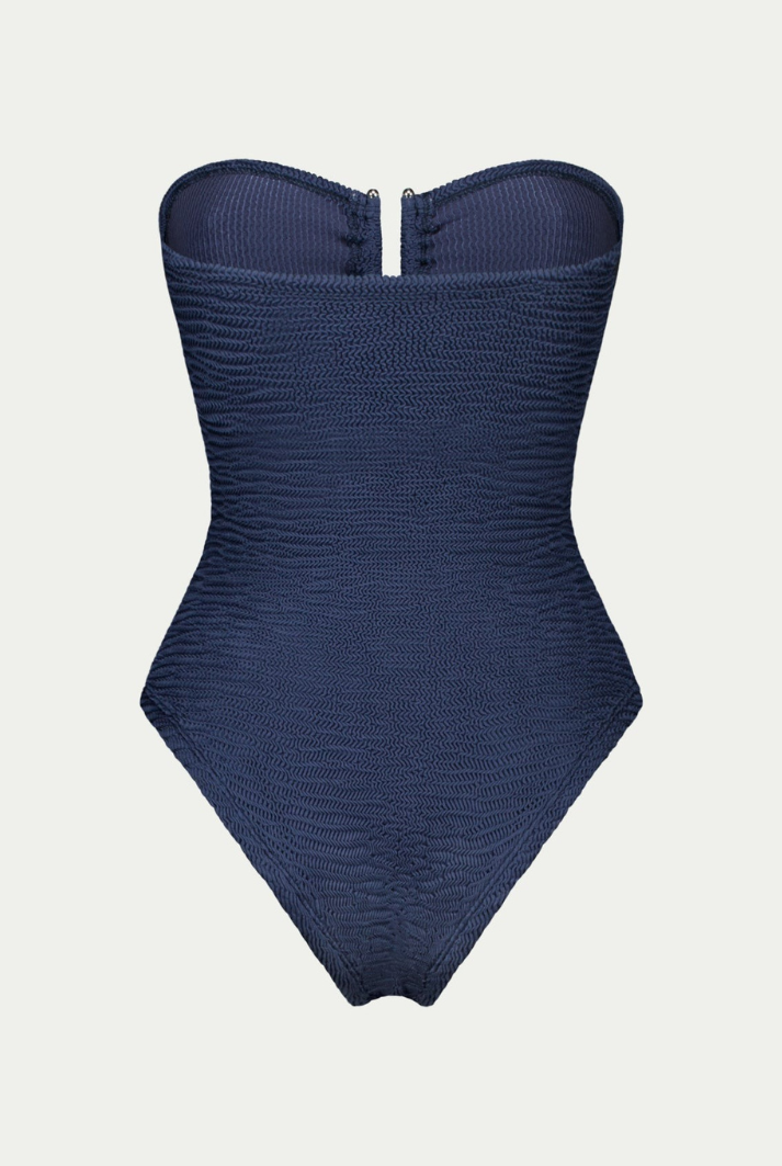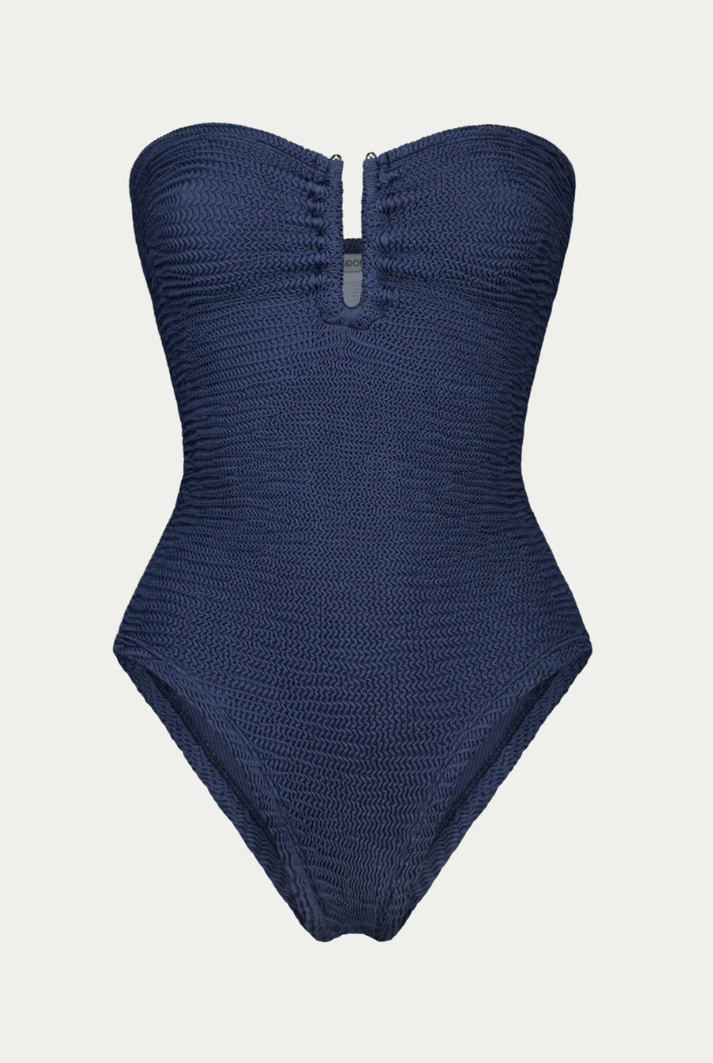 The swimsuit is made of high quality fabric with great elasticity and fits sizes XS to 2XL. The model is strapless, with a cut-out in the middle, accompanied by a metallic accessory and a mid-cut back. One piece FRIDA swimsuit is great for women of all chest sizes and fits great, shaping the body and emphasizing the waist. The cutout in the back of the model has good coverage.