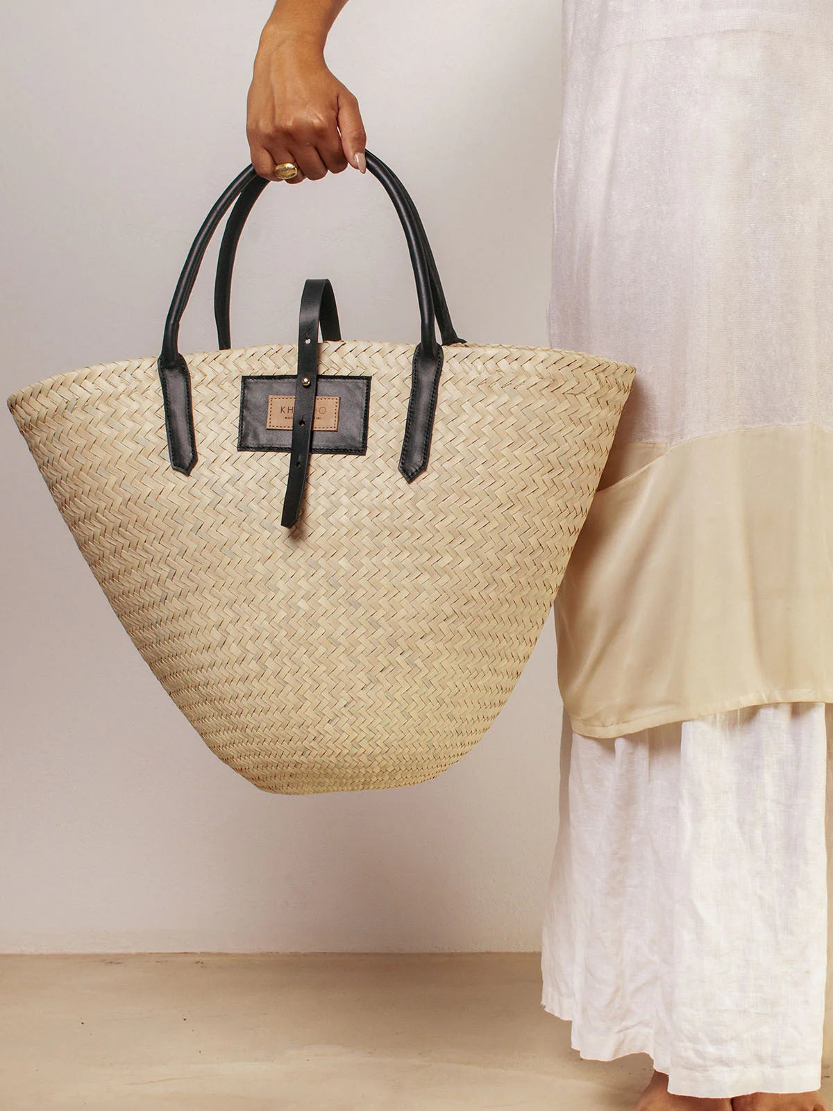 Designed for versatility, this woven palm tote offers a roomy interior ideal for everyday essentials, beach days, or travel. The open top with tab fastening keeps the silhouette relaxed yet functional, while sturdy top handles ensure comfortable wear. Timeless, practical, and thoughtfully made, this artisan tote brings natural texture and ethical craftsmanship into your daily wardrobe.