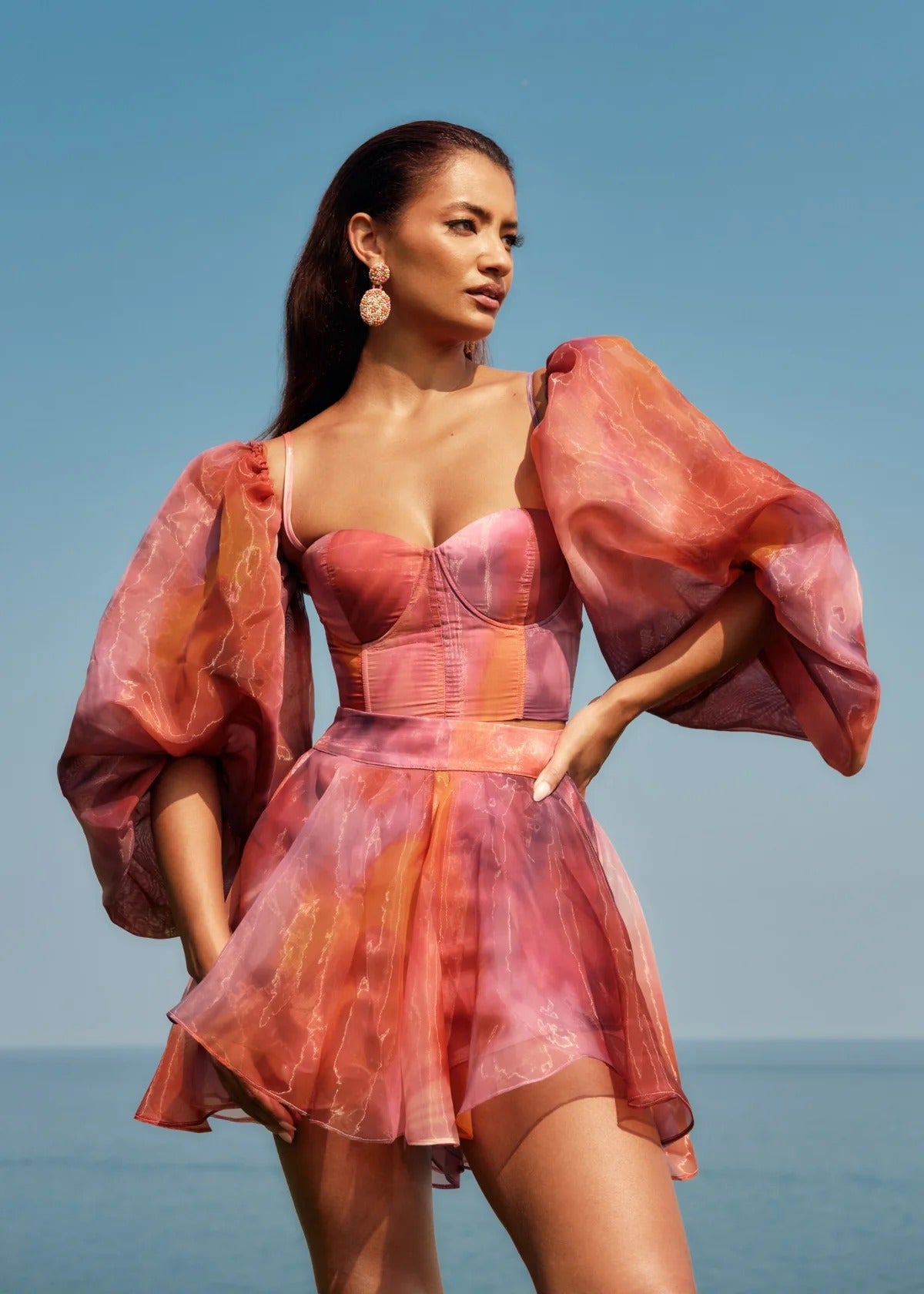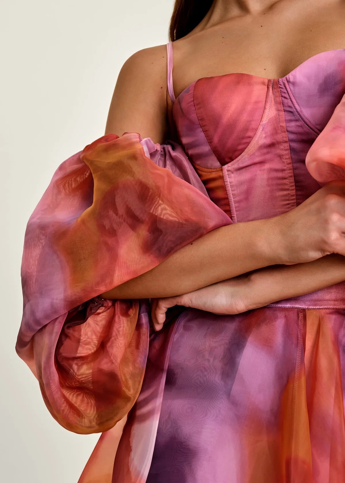 The KOKOS 3/4 Sleeve Crop Top is back with an upgrade. This cropped corset top is adorned with fixed bra cups and a luxurious organza overlay, offering a chic and structured look. The boned bodice ensures a flattering fit, while the adjustable, voluminous high-low puff sleeves provide versatile styling options, whether worn on or off the shoulder. Both the sleeves and adjustable straps are detachable, allowing for a customizable fit. Functional corset lacing at the back adds a touch of vintage charm, and the side seam zipper makes for easy wear. Perfect for creating a fashion-forward ensemble, the KOKOS Crop Top pairs seamlessly with a variety of bottoms.