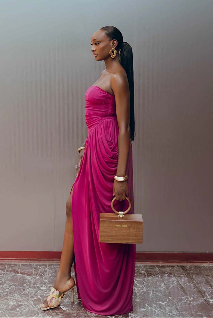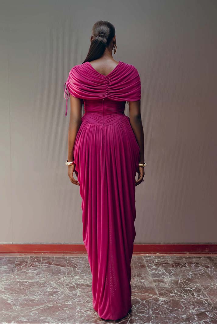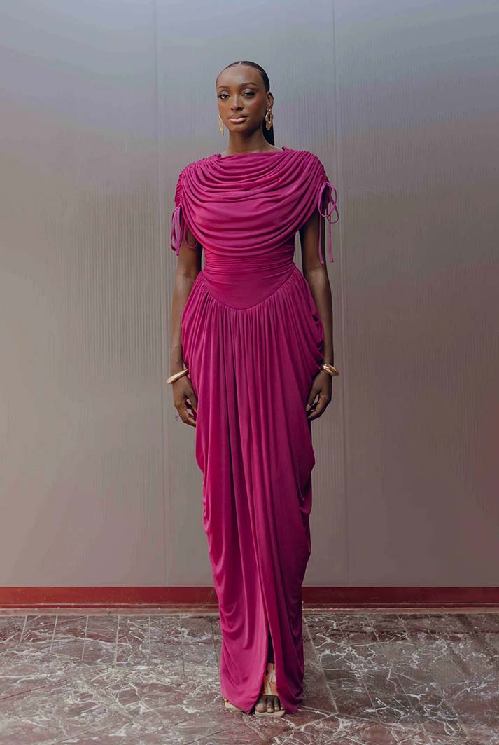 The KATU Mesh Maxi Dress moves effortlessly between elegant evenings and standout escapes, combining sculpted structure with fluid movement. Crafted in soft stretch mesh, this bodycon maxi dress features a curved dropped waist that accentuates the figure, strategic ruching through the bodice, and a thigh high front slit that adds drama while maintaining a refined silhouette. Fluid draping and gathered details bring a subtle Grecian inspired elegance to the design.
